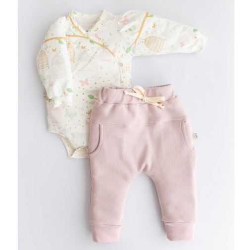 Roupas em alta qualidade e conforto. Modelagem perfeita que acompanha exatamente o tamanho do bebê com elasticidade e praticidade para vestir. Body com abertura Kimono (modelo envelope) abertura total para não precisar passar nem por baixo e nem pela cabeça. Calça em suedine com laço.