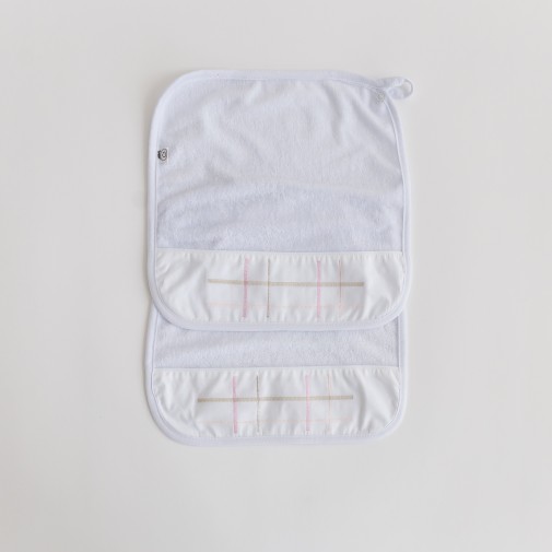 Confeccionado em toalha de malha com tingimento exclusivo, o kit contém 2 peças com toque macio e alta absorção, ideais para limpar as babinhas e pequenas sujeirinhas com delicadeza.